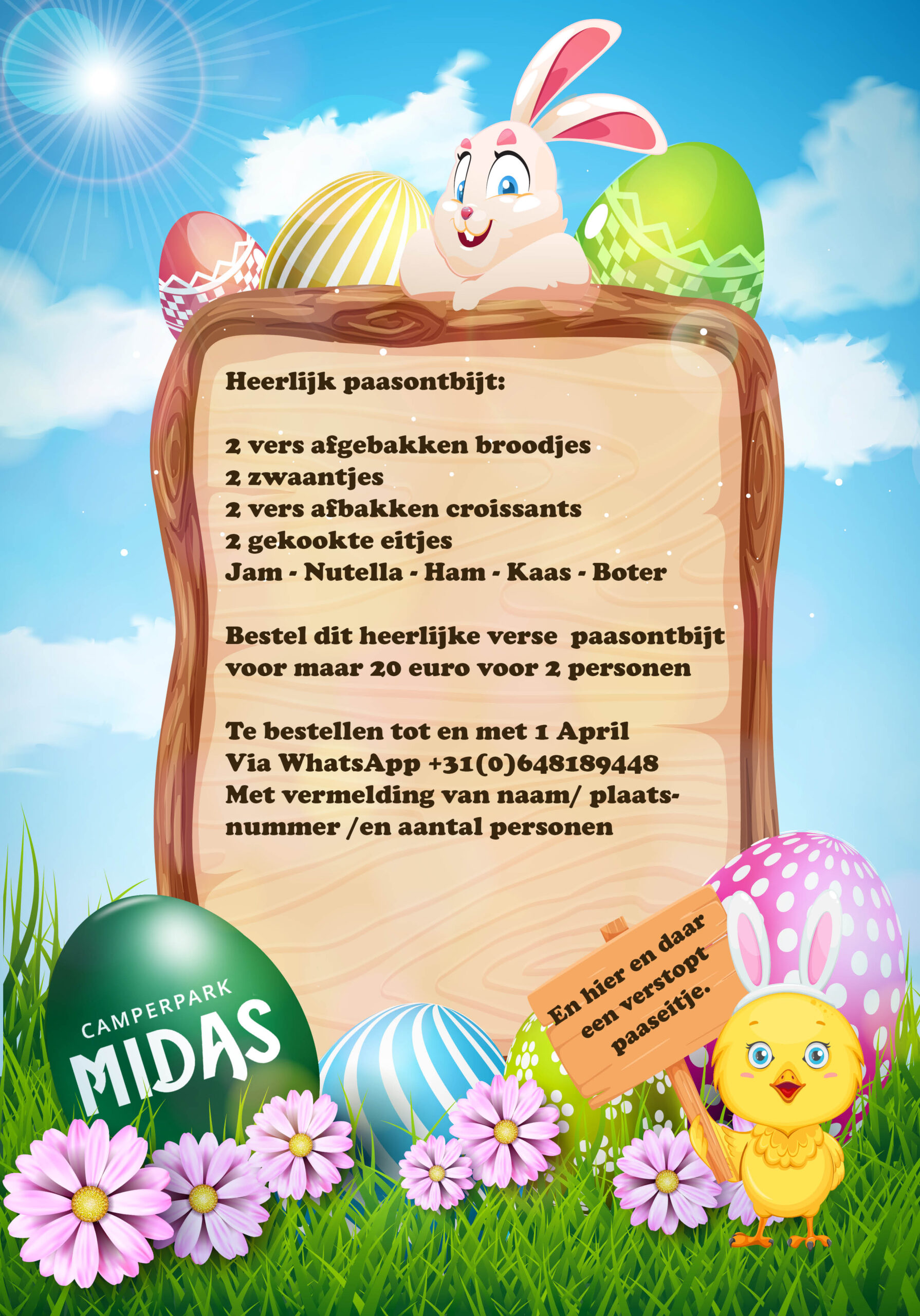 Het is ook mogelijk om een bestelling te doen en deze op te halen wanneer u op ons park verblijft.